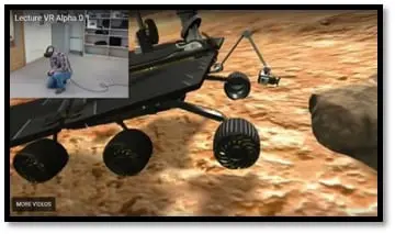 Applications allowing their users to see examples of information infrastructureIt may be time-consuming, costly, and cumbersome to allow trainees to examine various types of information infrastructure, e.g., information infrastructures of nuclear plants, airports, and railroads. AR and VR technologies will allow training companies to provide trainees with the opportunity to examine such infrastructures without the need to access them closely. For example, VR technologies can be used to examine industrial computer systems targeted by Stuxnet. Stuxnet is a malicious worm which attacks industrial digital computers controlling robotic devices, assembly lines, manufacturing processes, and other related activities. Stuxnet caused substantial damage to Iran's nuclear facilities. VR and AR technologies can also be used to allow trainees to see information infrastructure on Mars and other planets. By way of illustration, Lecture VR is a VR application which allows students to see Apollo 11 (the spaceflight that landed humans on the Moon for the first time) as operating on the Moon. A screenshot of Lecture VR is provided below.