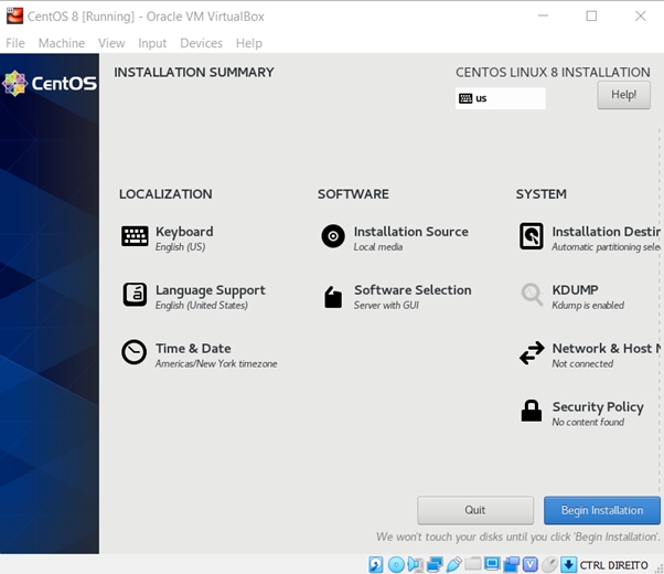 Finally, you can begin your CentOS 8 installation.