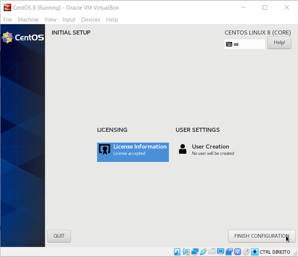 After finishing the initial setup, you need to execute some additional steps. First, you need to accept the OS EULA.