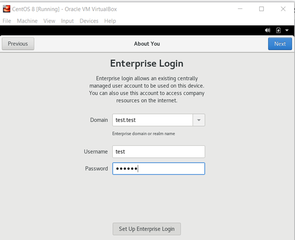 In the next step, you need to configure the enterprise login. Add the domain of the business, a new user and password.