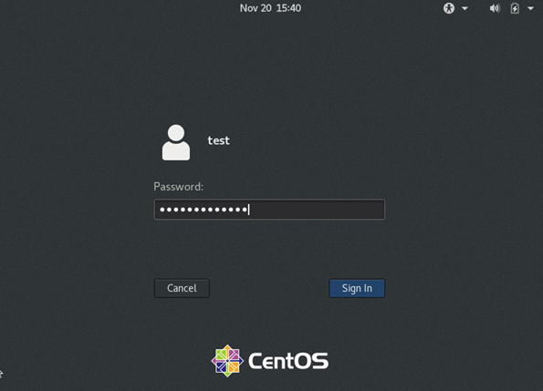 Click on “Start Using CentOS Linux” and then log in, using your credentials.