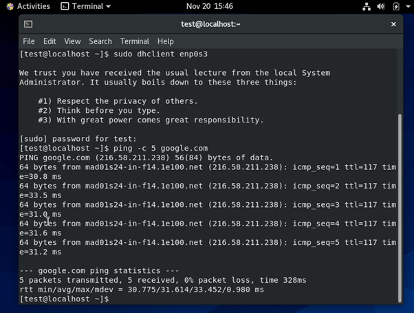 Now, try to ping google.com as follows: