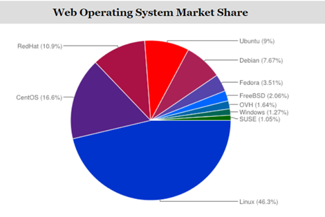 Unix is clearly leading. Let’s break it down into the actual OS, because there are many operating systems based on Unix are available in the market. According to the report concluded by SolveDNS, CentOS, RedHat, Ubuntu and Debian are the top, and Fedora follows them.