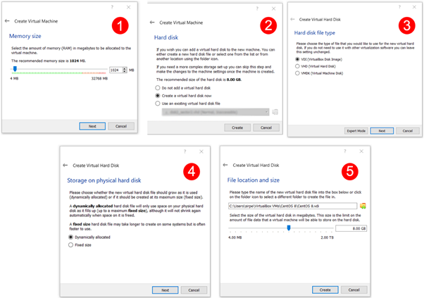 Next, create the virtual disk (VDI) and move to the next screen. Fixed size of the disk is not recommended in any scenario because you will be downloading many packages to run various applications.