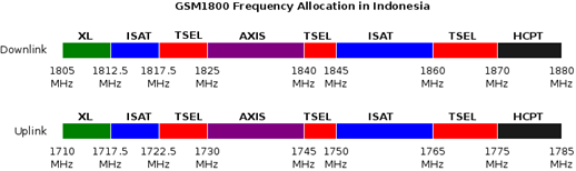 Picture 7. GSM1800 frequency allocation in Indonesia.