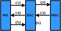 When MS communicates to a BTS, MS identifies himself using IMSI and IMEI, and BSC to MSC communication to respond to IMSI. The authentication function is to assure that MS is a legitimate user. An illustration can be seen in the image below: