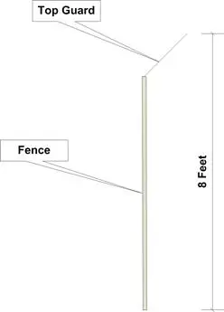 In some cases, simple fencing is not enough. In such cases, you might have to recommend a top guard. See Figure 13-5. A top guard uses strands of barbed wire or barbed/razor tape, spaced six inches apart, to deter fence climbing. Extending outward at 45 degrees, it increases fence height by about one foot and threatens to make going over the top a painful affair.