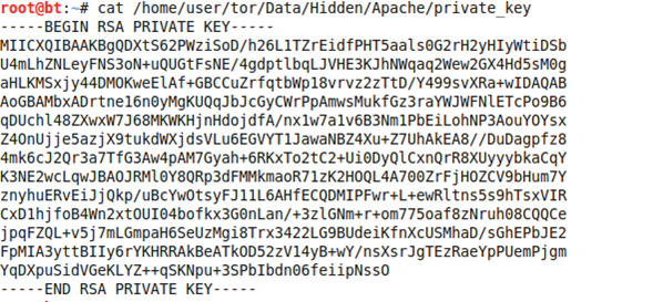 The file private_key contains the public/private keypair that is used for encrypting/decrypting the data that flows between the client and our hidden service. The contents of that file can be seen in the next picture: