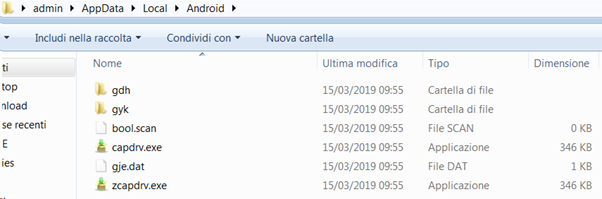 All the useful artifacts are extracted into the %appdata%Local path, creating a new directory named “Android.” The name aims at being related to the popular mobile operating system, keeping itself under the radar.