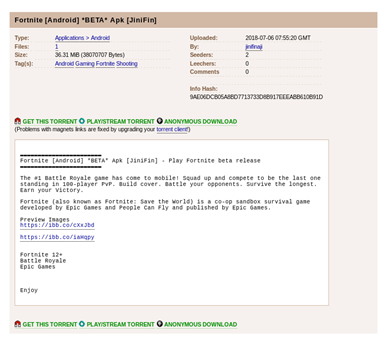 Let’s search for Fortnite on The Pirate Bay search engine: