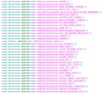 No doubt, it’s a fake app spread via the torrent network that includes spyware. Reverse engineering the app, we noticed that the app requests all permissions, even the ability to access critical ones like sending and receiving SMS, camera, Bluetooth, set wallpaper, manage call, kill other applications and so on.
