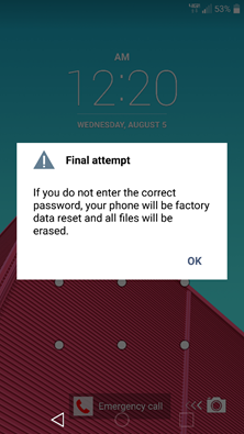 In this attack, the attacker is required to have physical access to the mobile device rather than allowing an attacker to attack remotely. Brute force attack tries a set of passwords to unlock the device. It is a time-consuming process as it depends on the complexity of the password. Tougher the password, more the time required to try the whole dictionary of passwords.