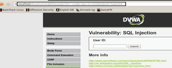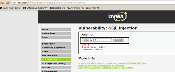 Using id= ' order by 3 # application throws the MySQL error and tells that the 3rd column is not used in the query. The (#) used here is to comment out the rest of the backend query. So it will be like: