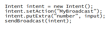 The application is sending intent using the following piece of code, in which "input" is the mobile number we are receiving as the user input.