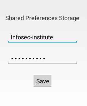Lets launch the sharedpreferences app and insert some sample data into the username and password fields.
