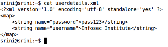 As we can see in the above figure, "userdetails.xml" file has been copied onto the local machine. We can now see the contents of the file as shown in Figure 6.