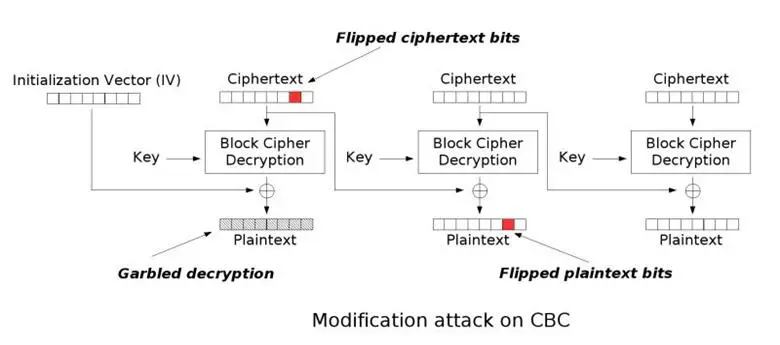 Note: The Ciphertext-N-1 is used to generate the plaintext of the next block; this is where the byte flipping attack comes into play. If we change one byte of the Ciphertext-N-1 then, by XORing with the net decrypted block, we will get a different plaintext! You got it? Do not worry, we will see a detailed example below. Meanwhile, below is a nice diagram explaining this attack: