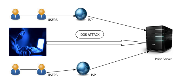 The amount of data to be printed varies according to the request made by the user. Since these all are processed through networks in MNC's, by increasing the traffic in such networks an attacker could bring down the device. The large number of request made by intruder might be a bit difficult to handle. This could result in the malfunction of the printer.