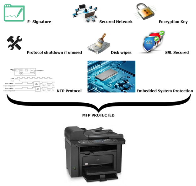 Printer configuration varies according to different models along with its manufactures but security steps are almost similar for all. Many steps can be taken to strengthen the security of the MFPs. These could be mainly divided into three: