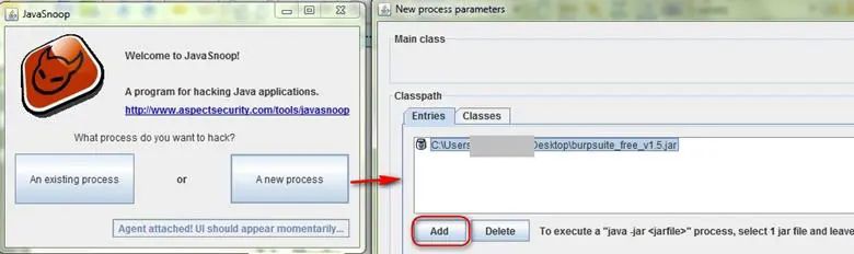 - Step 1: Inject the JavaSnoop agent into the BURP process