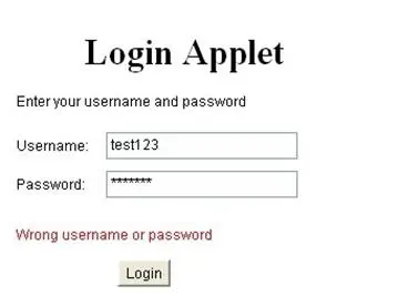 The snapshot below shows the Login Applet with the user credentials entered into the input fields.