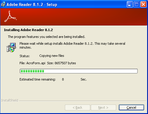 The vulnerable version of Adobe PDF Reader is 8.1.2 (including), which we need to download from the oldapps web page and install on the system. The installation process of the old vulnerable PDF Reader can be observed below: