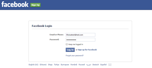 A dummy demonstration will take place below, by clicking on the malicious link. Facebook pops up, so some fake credentials are typed.
