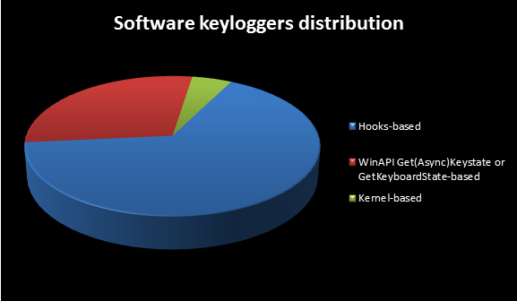 The chart below shows the percentage of distribution of the three most commonly used keylogger structures: