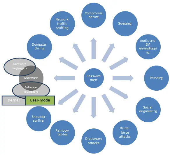 Below is a graphic that enumerates some methods of password pilfering, which serves as an introduction to the matter discussed:
