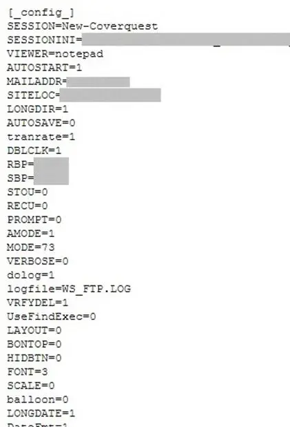 For e.g. a Google query like [filetype:ini inurl:ws_ftp.ini] would retrieve the configuration file used by the WS_FTP client program as shown in the screenshot below: