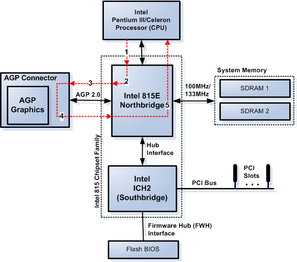 Figure 1 shows the "simplified" block diagram of the system that uses Intel 815E-ICH2 chipset combination. Figure 1 doesn't show the entire connection from the chipset to other components in the system, only those related to the address mapping in the system.