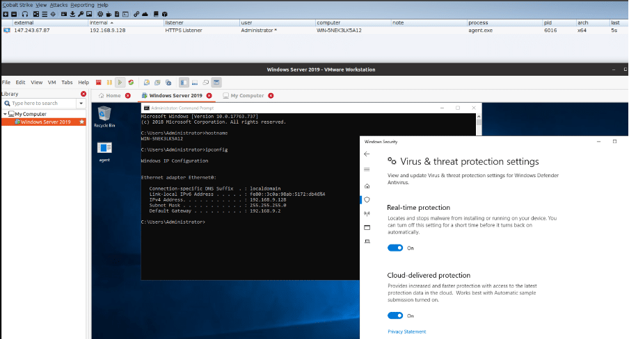 At this moment, we can execute the agent on the target machine, in this case, a Windows Server 2019.