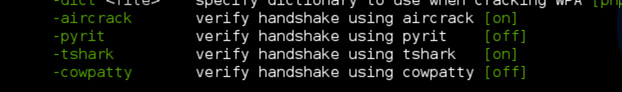 You can also specify which tool you want to use to crack the passphrase once the four-way handshake has been successfully captured. By default, aircrack-ng is selected. You can also use cowpatty, pyrit or tshark to crack the passphrase.