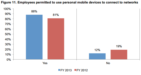 According to the Ponemon Institute, the BYOD usage continues to rise despite the concerns about employee negligence and the lack of security for mobile devices. Nearly 88 percent of organizations permit medical staff to use their own mobile devices to access their organization's networks and services like email.