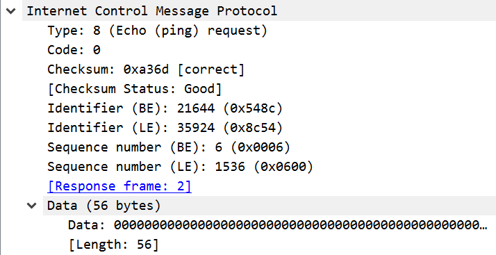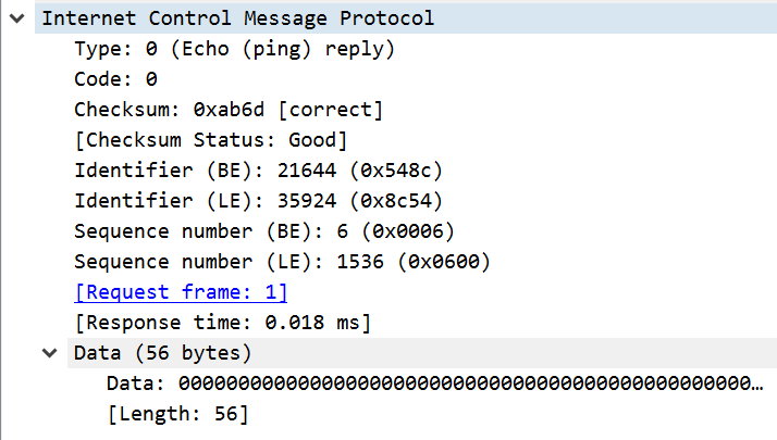 The images below show an ICMP ping request and response in Wireshark.