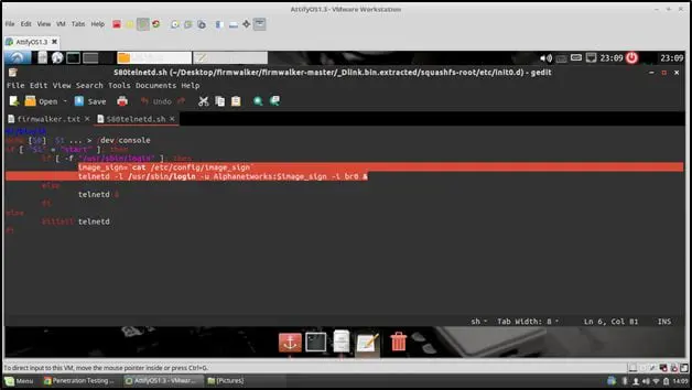 - Run Firmwalker – Once the files are extracted, we need to run Firmwalker over it. Firmwalker will scan all the files present in the firmware and look for the vulnerabilities listed above. The only prerequisite is the extracted firmware file, and Firmwalker should be present in the same folder. Once the scanning is done, Firmwalker generates the output in a file name Firmwalker.txt by default. This Firmwalker.txt file contains the list of vulnerabilities which were found in the firmware.