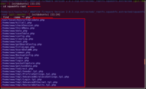 Now we need to find PHP files present in the firmware. This can be done using following command -