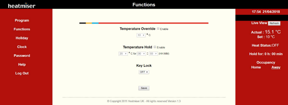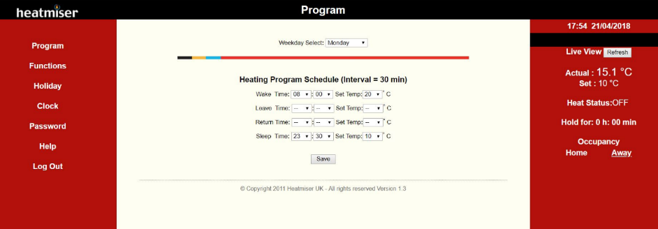 Figure 18: Heatmiser NetMonitor admin page