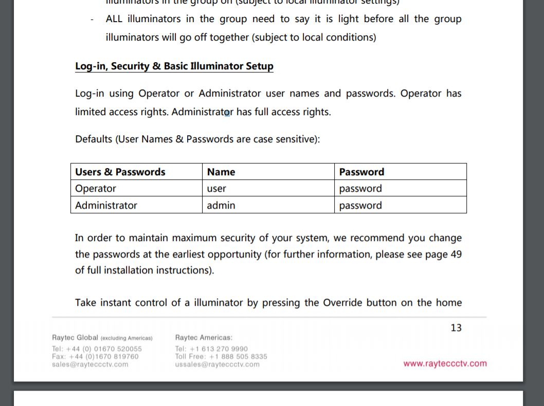 Figure 19: Raytec default credentials from official documentation