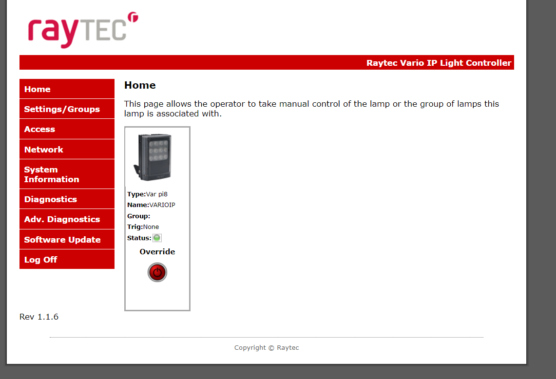 Figure 21: Raytec light controller admin page