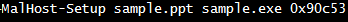 In the last document, we have seen 3 offsets which OfficeMalScanner scan command identifies 0x90fca,0x90c53 and 0xf51. Now we have to carve an executable from these offsets and check which one of them has resulted in binary which executes the shellcode. For that, we will use Malhost-Setup like below