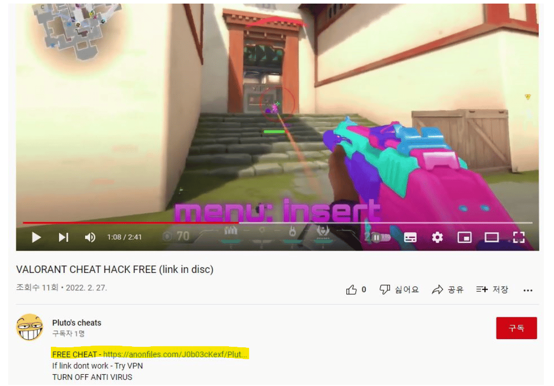 Figure 2: Blackguard malware disseminated on Youtube via attached URLs on videos’ descriptions (source).