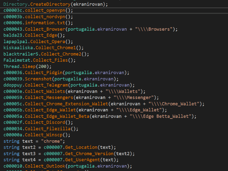 The workflow of Blackguard is simple: it validates if it is being executed under a sandbox environment, decodes its internal strings in memory, collects sensitive information, including browser information and crypto-wallets, and sends all the information to the Telegram channel.