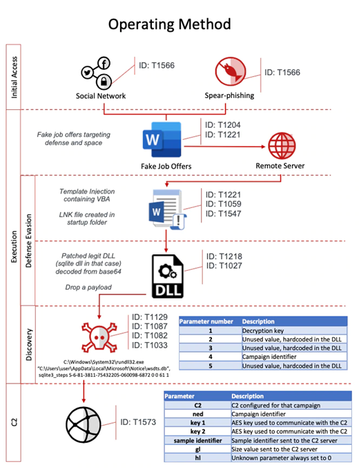 As mentioned, the malicious Word documents contain content related to legitimate job positions. Figure 2 presents the operation workflow of the BlindingCan malware.
