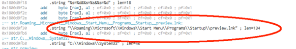 Figure 8: A LNK file is created into the startup folder as a persistence technique