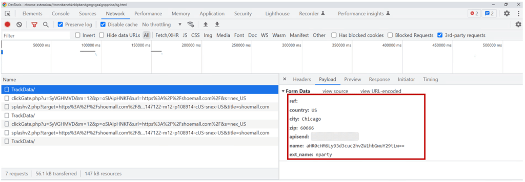 As observed, these extensions have a specific purpose depending on their nature. One of them is related to Netflix and enables users to watch Netflix content together; another can be used to take screenshots of a website, etc. However, these extensions also track the users’ browsing activity, sending information to a C2 server controlled by criminals and tampering with cookies on the victims' web browsers to receive affiliate payment for purchased items.