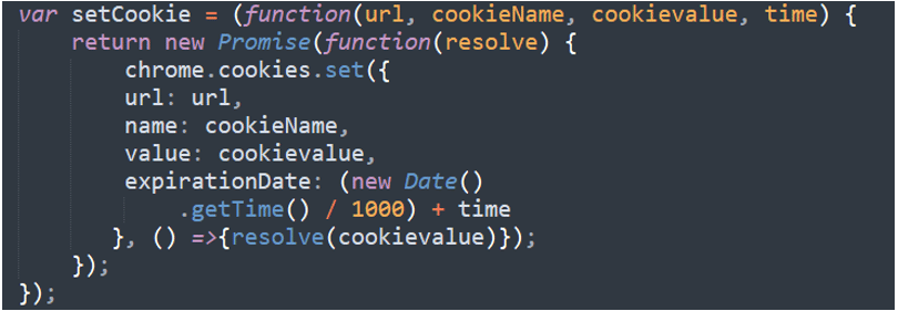 Figure 3: Source code responsible for setting the cookie on the target eCommerce website.