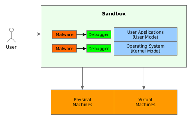 - Detect a Sandbox Environment: a sandbox is an environment separate from the main operating system where malware samples can be run without causing any harm to the rest of the system. The primary purpose of sandbox environment is to emulate different parts of the system, or the whole system to separate the guest system from the host system. Depending on the virtualization layer, there are different types of sandboxes, which are presented below.