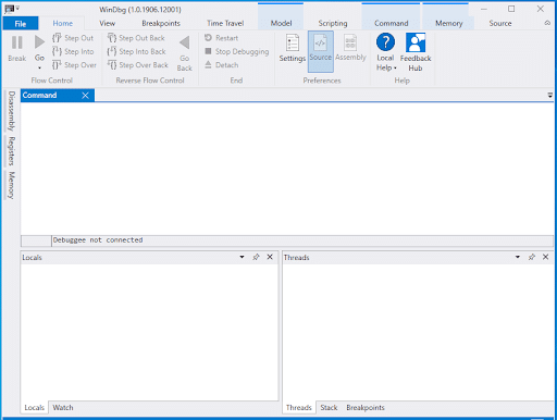 Let’s download WinDbg Preview and launch it. This looks as shown below.