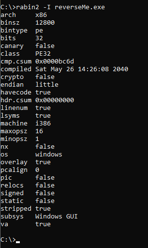 Download the Windows installer and install Radare2. When the Radare2 framework is installed, some additional utilities such as Rabin2 and Radiff2 will be installed along with Radare2.